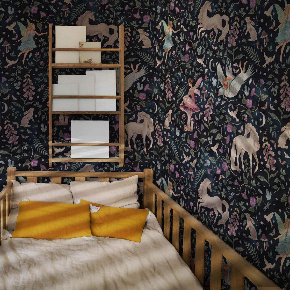 Представьте, что стены вашего дома превратились в страницы волшебной книги! С обоями "Fairytale" это реально. Взгляните: на фоне глубокого ночного неба, искрящегося звездами, танцуют феи с прозрачными крыльями. Грациозный единорог, словно сошедший с небес, несется сквозь волшебный лес, полный диковинных растений и цветов.